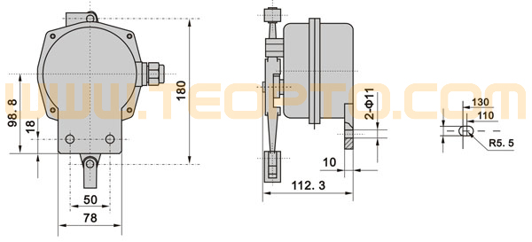 | 使用环境条件:环境温度:-30℃~+50℃ 相对湿度:不小于85% 动作角度:30° 极限角度:60° 动 作 力:10Kg 触点数量:1个常开,1个常闭 触点容量:AC380V/5A 复位方式:自动 可 靠 性:>106次 防护等级:IP65 重 量:2.5Kg |