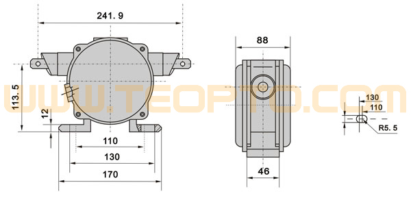 | 当胶带运输现场发生紧急事故时,拉动系在吊耳上的钢丝绳,是机内的滑块与开关作用,发出停机信号。 松开钢丝绳后开关自动复位。 |