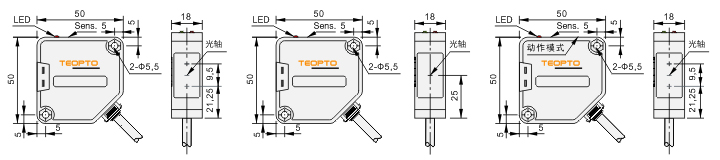 | 直接反射型,镜面反射型 | 对射型 | AC/DC 5线 |